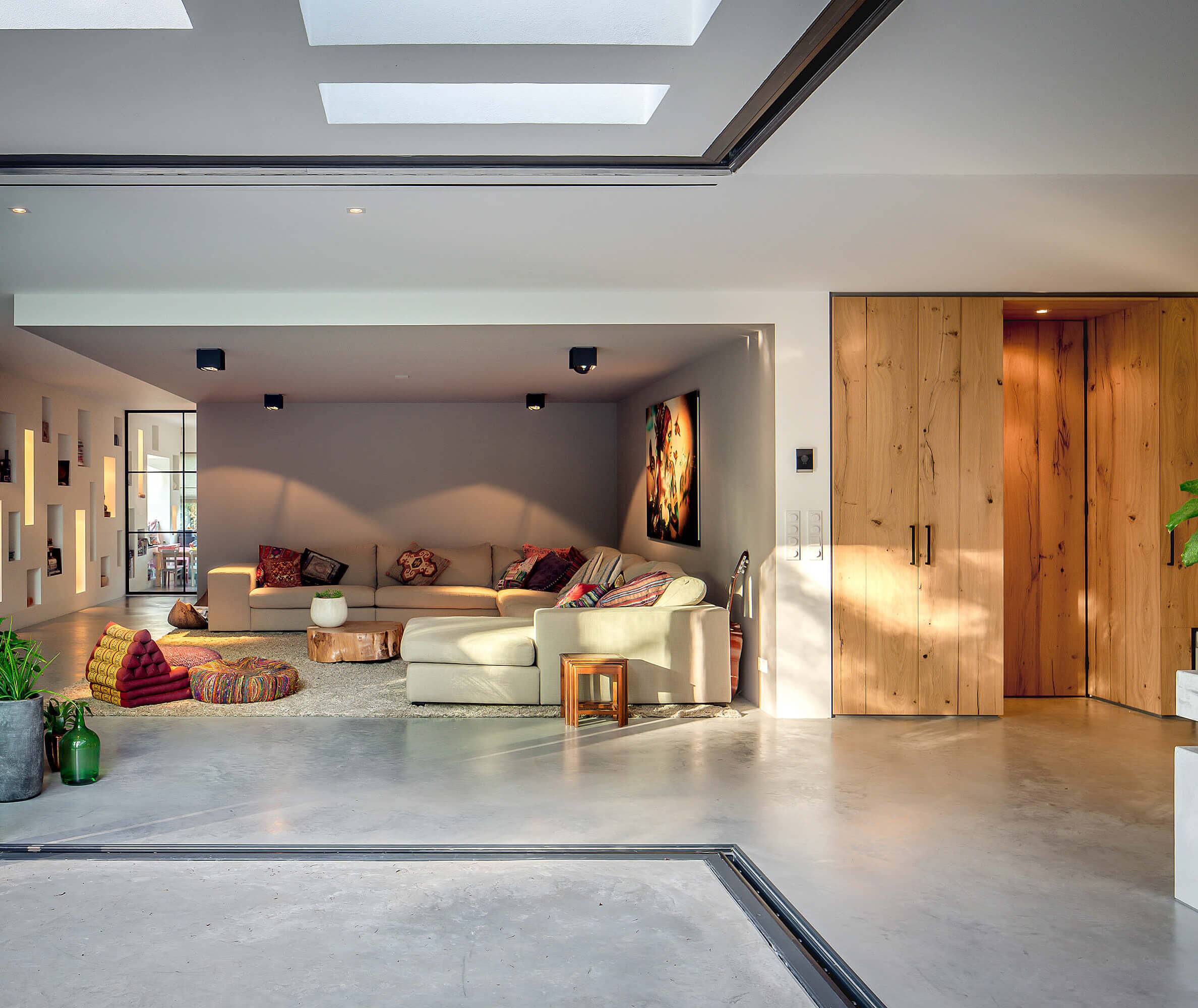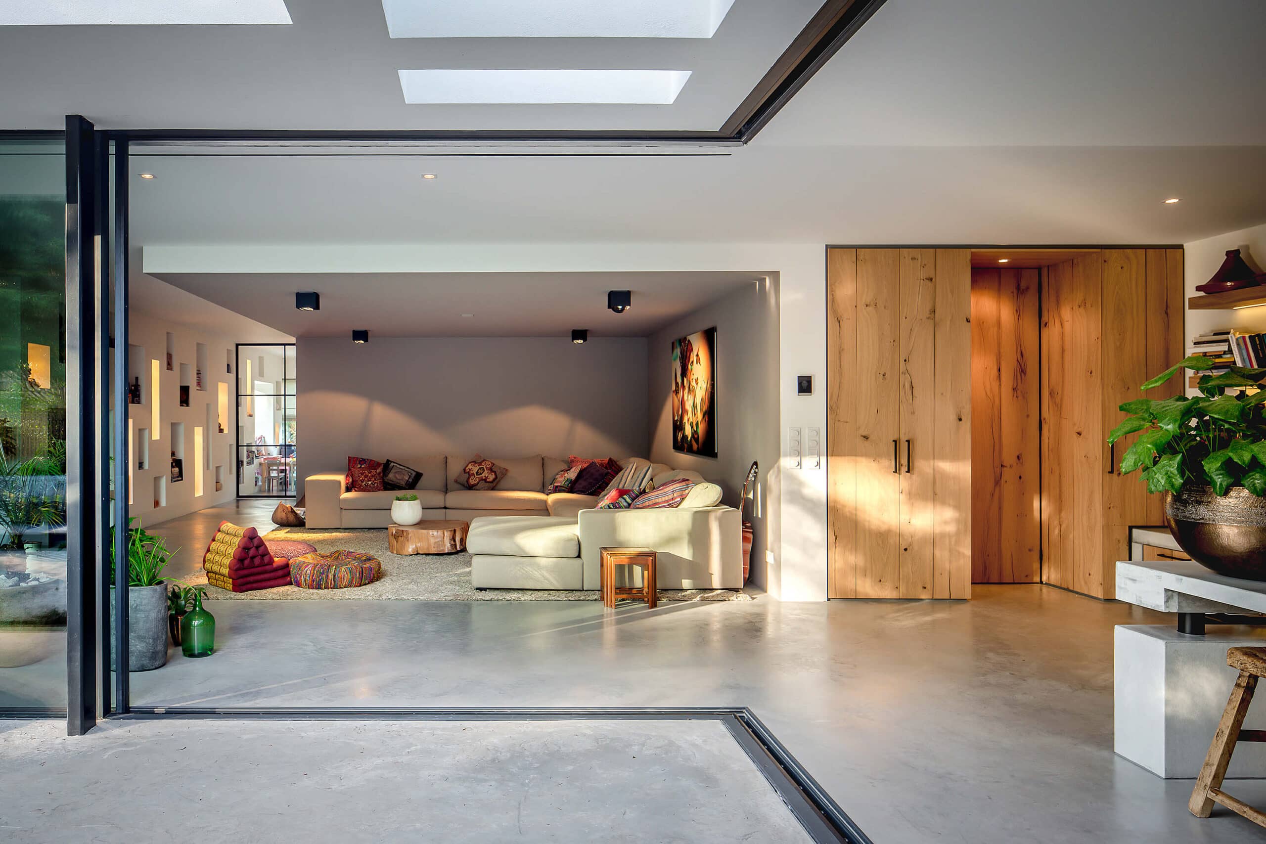 Villa W zeigt ein perfektes Gleichgewicht zwischen der Bewahrung des ursprünglichen Charmes und der Hinzufügung zeitgenössischer Elemente. Mit 169.02 Beamwood Oak Natural erhält der Anbau natürliche und robuste Elemente, während die offene Gestaltung und großen Schiebetüren das Haus licht und luftig machen. Das Interieur, mit seinen sanften Tönen und der modernen Möbelwahl, lässt die Geschichte der Villa sprechen, ohne die moderne Renovierung zu beeinträchtigen, wodurch ein zeitloser, eleganter Wohnraum entsteht.