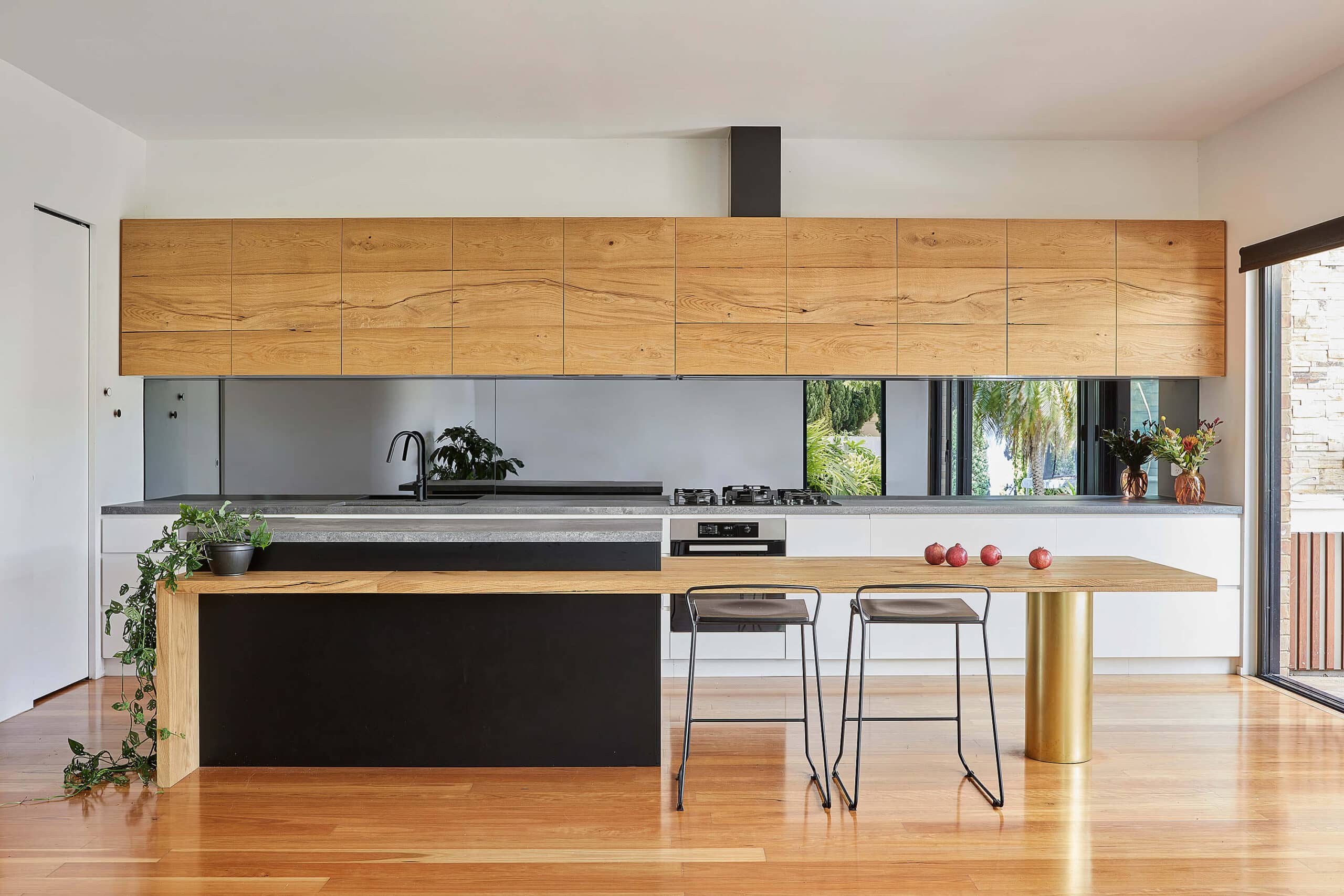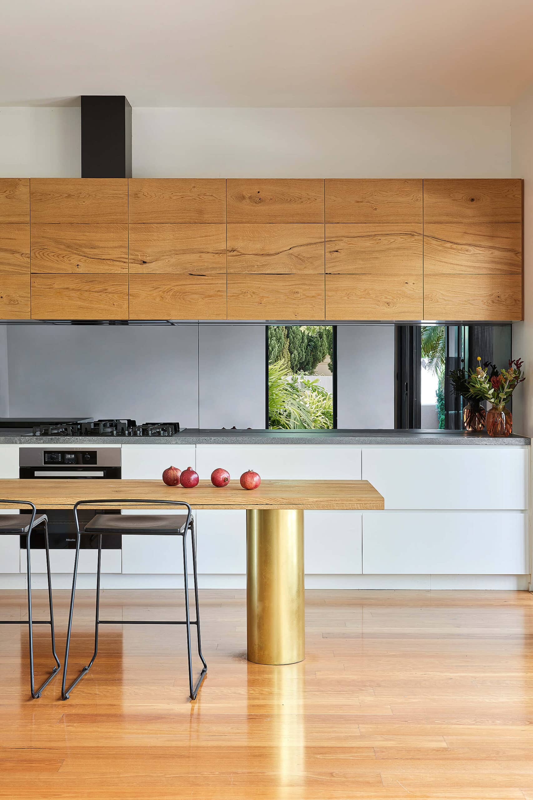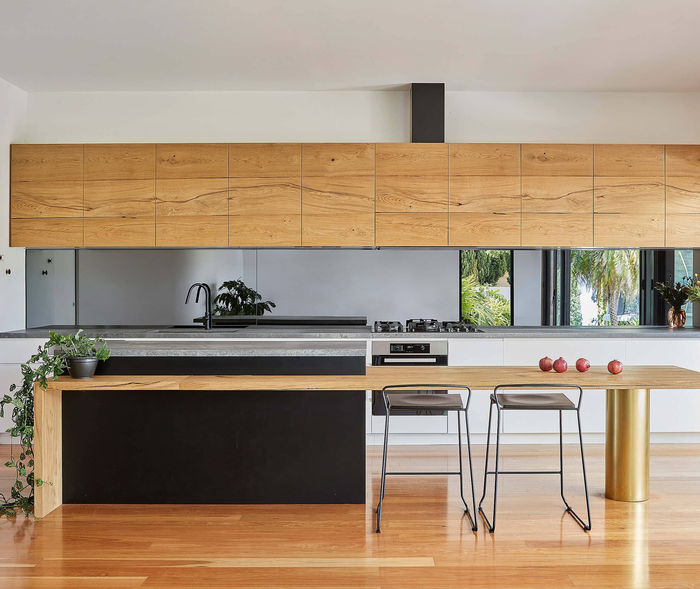 In the Pomegranate House, the use of Lignapal premium finished veneer, cut from beautiful, vintage oak beams, brings natural warmth and texture to the kitchen. The application of 169.02 Beamwood Oak Natural gives the space an inviting character, with the wooden accents perfectly complementing the serene design of this renovated family home. The result is a peaceful and cheerful living environment, a place you look forward to returning to every day.