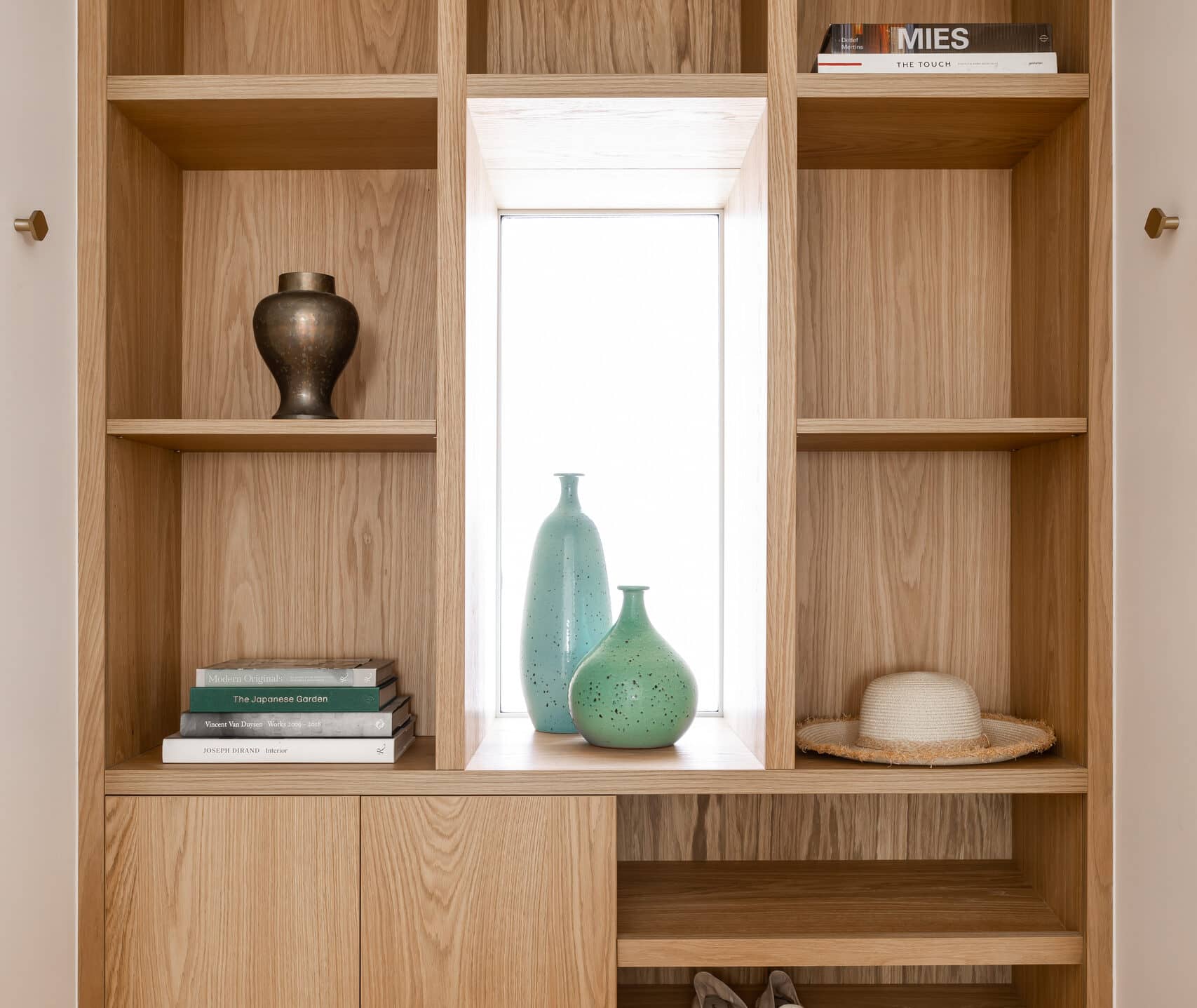 Das Melrose House strahlt eine ruhige Eleganz aus, mit einer nahtlosen Verbindung zwischen Innen- und Außenbereichen. Der Einsatz von Oak Crown in den Schränken verleiht dem Raum eine subtile Textur und natürliche Wärme. Das helle Holzfurnier, kombiniert mit einer minimalistischen Farbpalette und der offenen Verbindung zur Außenumgebung, verstärkt die serenen und einladenden Atmosphäre des Interieurs.