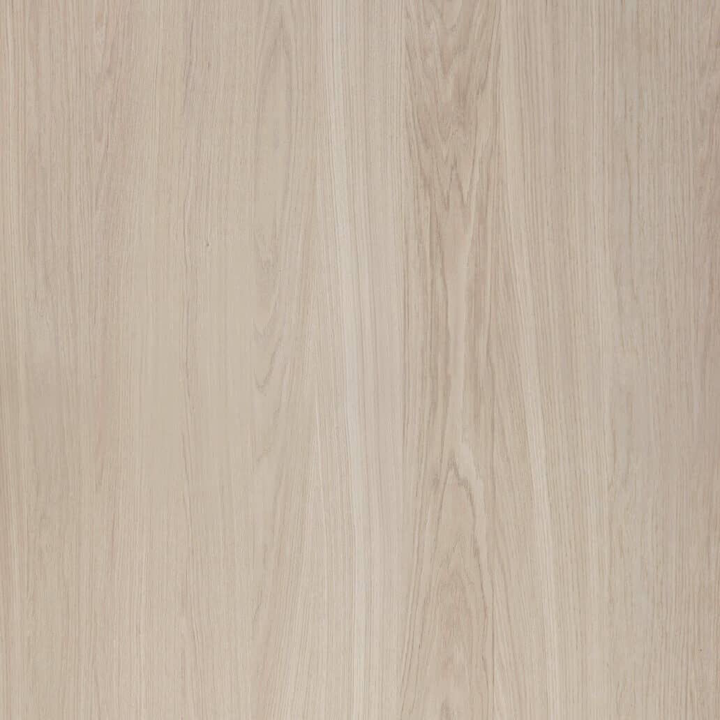 Pre-finished veneer panel, Lignapal 163.14 Oak Vibrant Grey Wash; European oak veneer, class A (free of discolouration, mineral streaks, pin knots, flakes or “fiddle-back” markings), mix-matched according to 163.14 Oak Vibrant Grey Wash (half crown/rift mix), Tynex-brushed, surface stain (colour according to 163.14 Oak Vibrant Grey Wash), finished with curtain-coated water-based multilayer UV-cured polyacrylate lacquer, less than 5 gloss units. Pressed on resin-impregnated paper. Board size 3050 × 1220 mm.