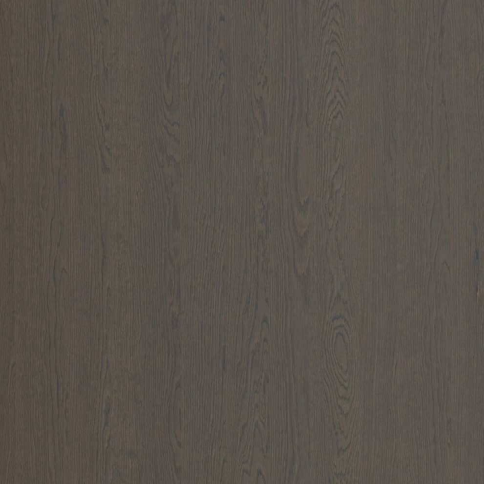 Panneau de placage bois prélaqué, Lignapal 163.54 Oak Vibrant Dark Grey ; placage chêne européen, qualité A (sans décoloration, stries minérales, nœuds d’épingle, marques de fluttering ou de fiddle-back), méthode d’assemblage mix-match selon 163.54 Chêne gris foncé vibrant (mélange demi-dose/quart/rift), brossage Tynex, lasure de surface (couleur selon 163.54 Chêne gris foncé vibrant), finition avec vernis polyacrylate multicouche à base d’eau séché aux UV, moins de 5 unités de brillance, recouvert d’un voile. Pressé sur du papier imprégné de résine. Format de la feuille 3050 × 1220 mm.