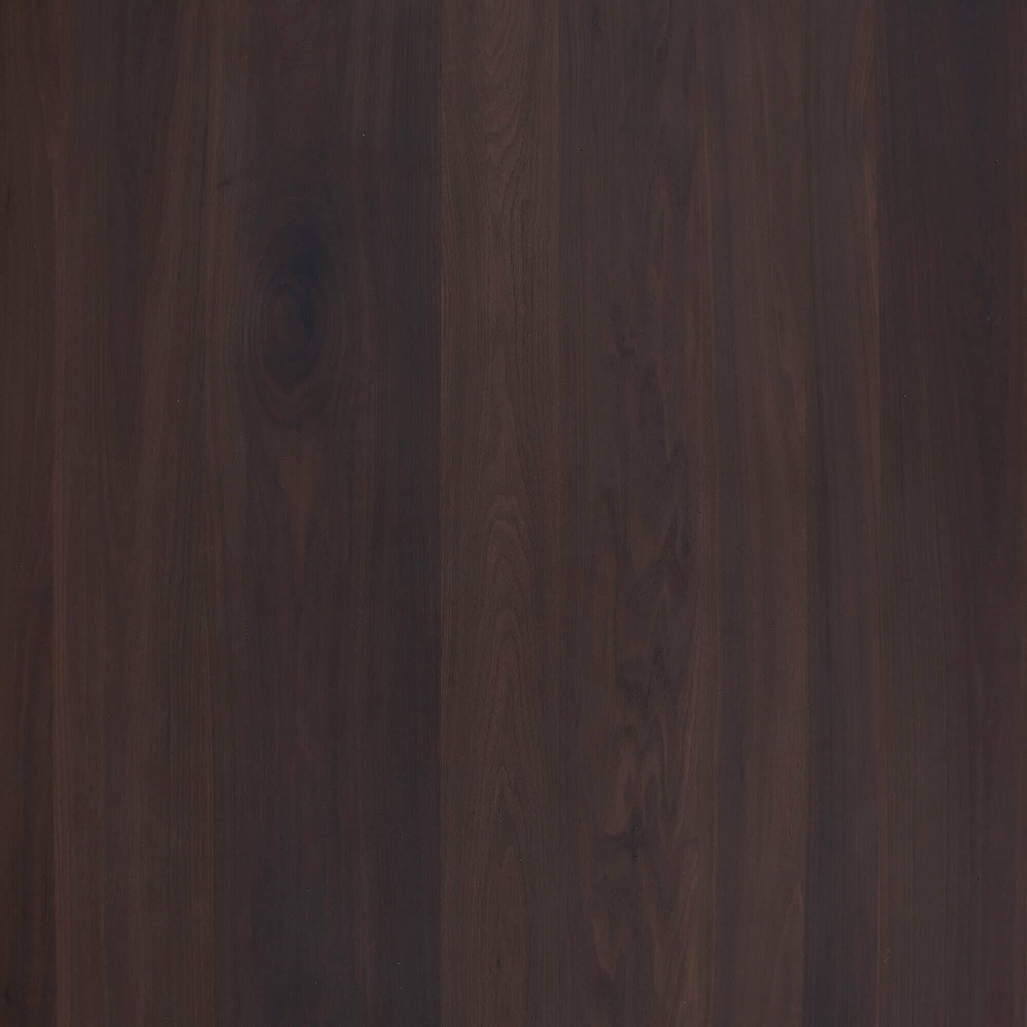 Panneau de placage bois préfini, Lignapal 398.02 Walnut Smoked Crown ; placage de noyer européen, qualité A (sans décoloration, stries minérales, nœuds d’épingle, fluttering ou fiddle-back), méthode d’assemblage mix-match selon 398.02 Walnut Smoked Crown (mélange complet de couronnes), brossage Tynex, teinture de surface (couleur selon 398.02 Walnut Smoked Crown), finition avec une laque polyacrylate multicouche à base d’eau, séchée aux UV, 10 unités de brillance, recouverte d’un voile. Pressé sur du papier imprégné de résine. Format de la feuille 3050 × 1220 mm.