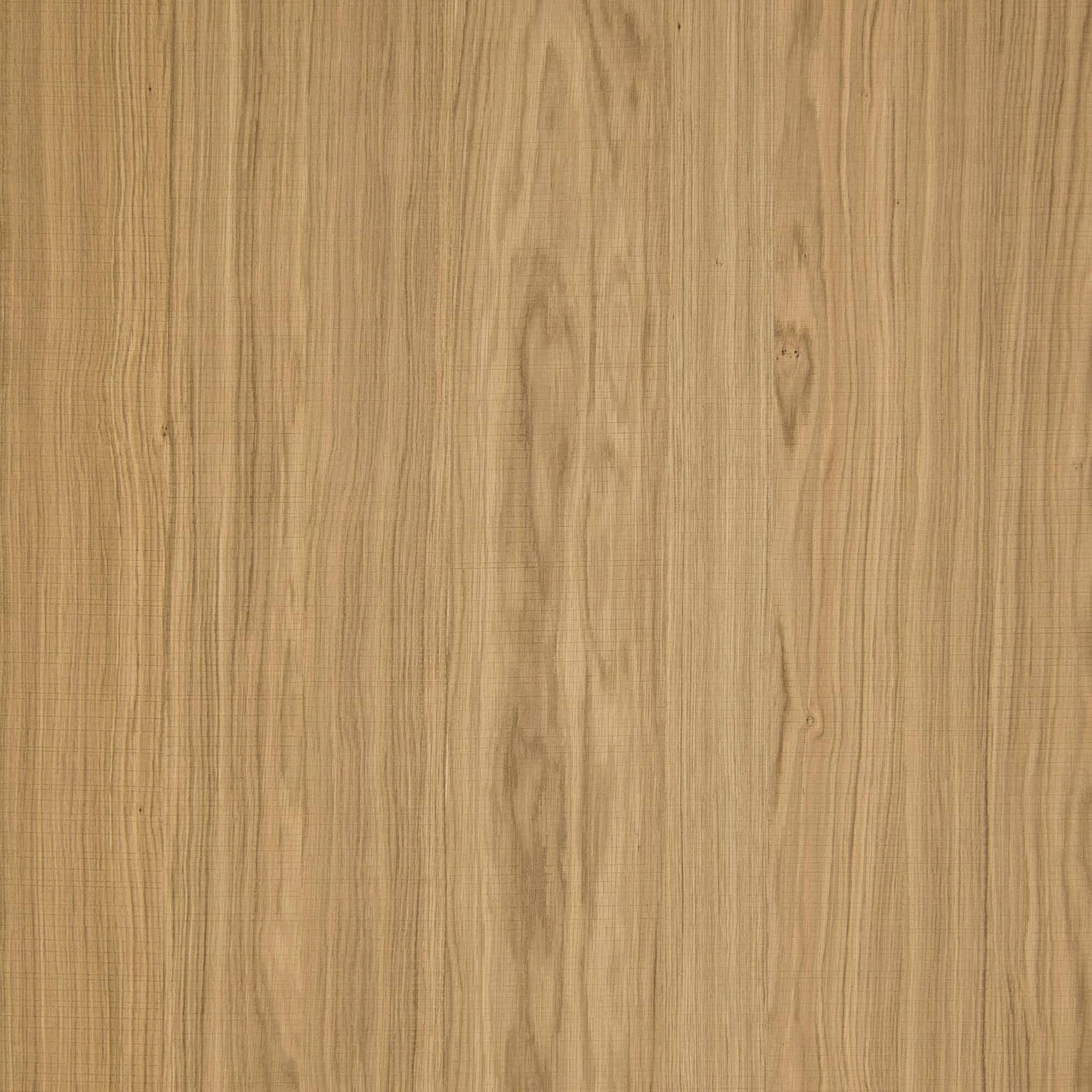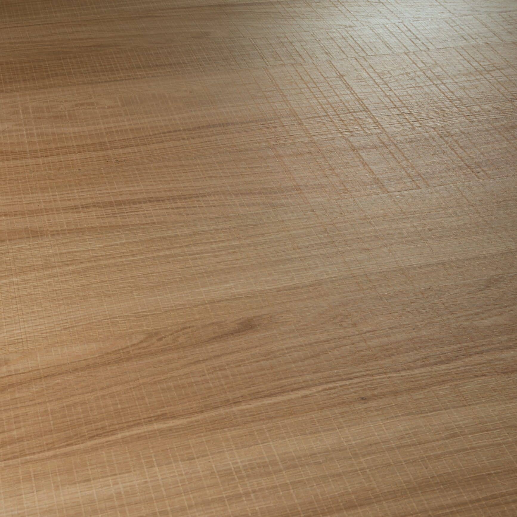 Voorgelakt houtfineerpaneel, Lignapal 168.02 Sawn Oak; Europees eikenfineer, A-kwaliteit (vrij van verkleuringen, mineraalstrepen, speldennoesten, fladervorming of fiddle-back tekening), gezaagd met lintzaagsporen, mix-match voegwijze conform 168.02 Sawn Oak (verspringende lintzaagsporen bij de voegen), afgewerkt met sluiergelakte watergedragen meerlaagse UV-uitgeharde polyacrylaatlak, minder dan 5 glansunits. Geperst op hars-geïmpregneerd papier. Plaatformaat 3050 × 1220 mm.