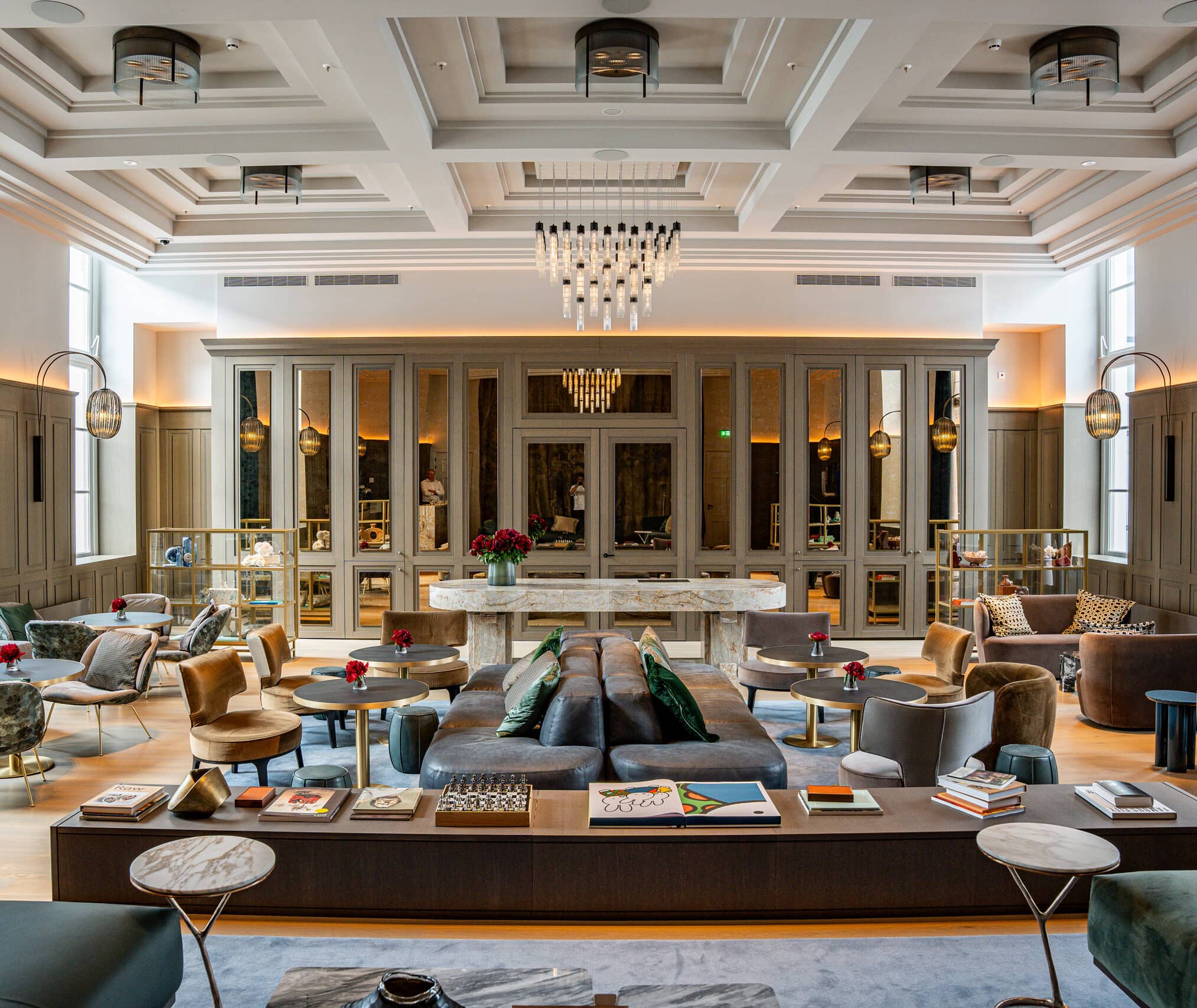 De imposante bibliotheek van het Rosewood Hotel is een toonbeeld van verfijnd interieurdesign en toont de veelzijdigheid van Lignapal 163.54 Oak Vibrant Dark Grey. Variaties in fineerdikte, subtiele kantafwerking en spiegelaccenten brengen ritme en diepte in de wandbekleding. Het resultaat is een elegante ruimte waarin luxe en architecturale precisie samenkomen, mogelijk gemaakt met prefinished fineer uit de Lignapal selectie.